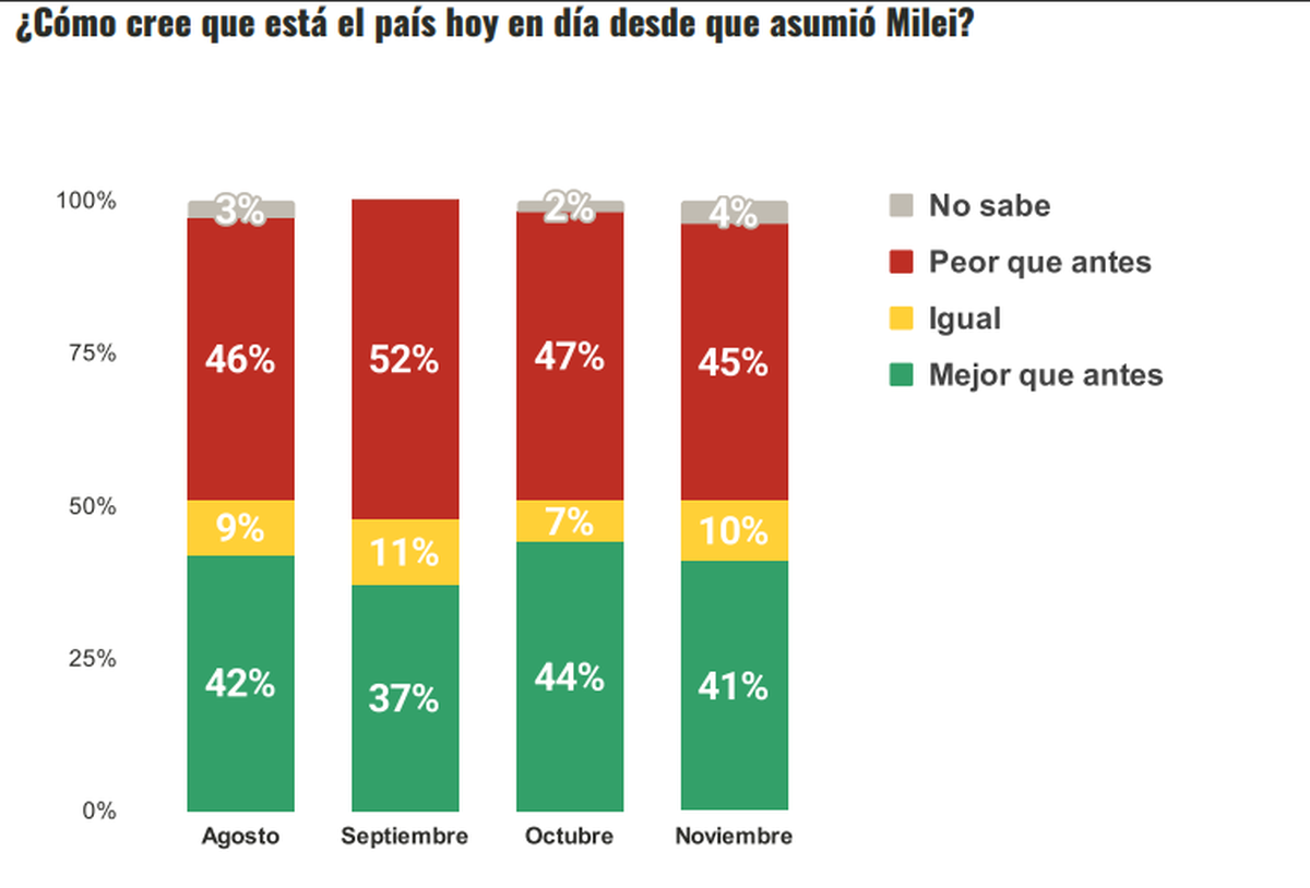 Para la mayoría el país está igual o peor que antes desde que asumió Milei.