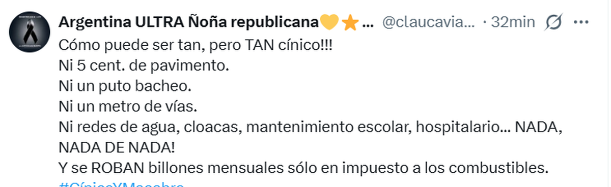 En este contexto, resultó llamativo (y generó mucha bronca en la red social X), un posteo del ministro de Desregulación, Federico Sturzenegger, que fue compartido por Javier Milei en su cuenta oficial.