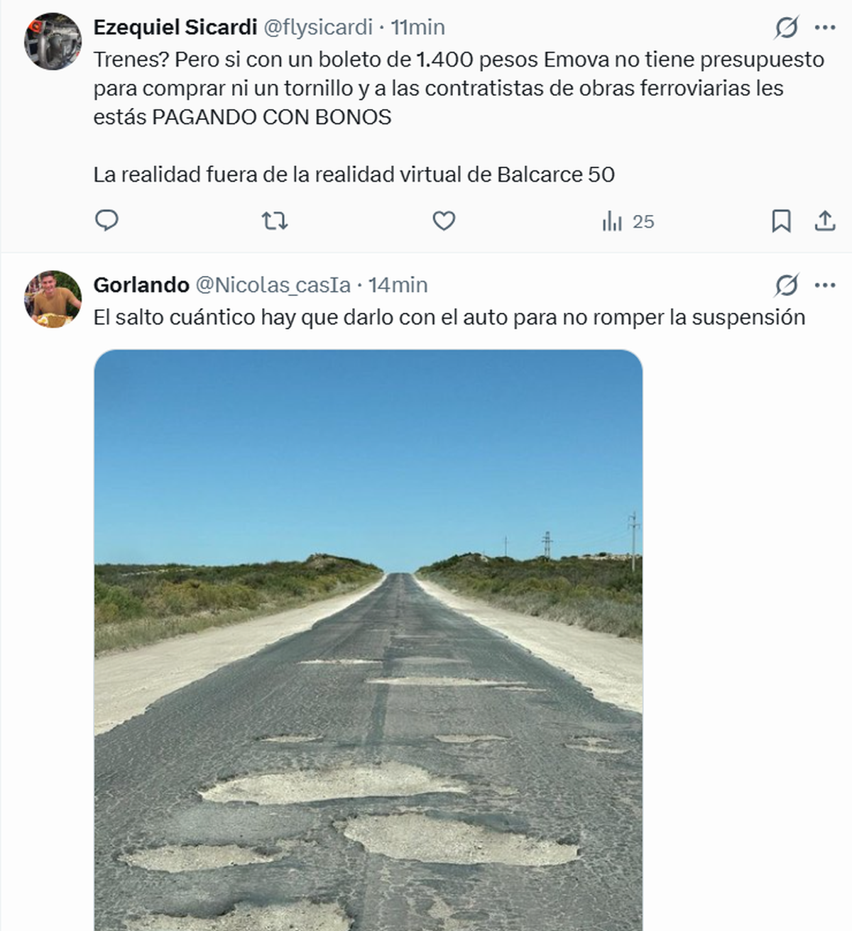 En momentos en que el deterioro de las rutas nacionales-por la paralización de la obra pública durante la gestión de Javier Milei- es una crítica unánime, y cuando los colectivos reducen frecuencias y hablan de "colapso inminente", Federico Sturzenegger promete un "salto cuántico" en la "infraestructura logística del país" cuando termine el "1er. mandato" libertario.