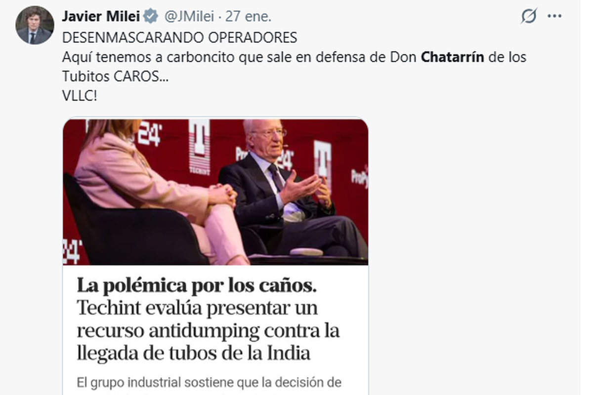Sigue la polémica entre Milei y Paolo Rocca( Techint) por la licitación perdida para proveer tubos a Southern Energy SA, a manos de la india Welspun. La polémica se centra en el proteccionismo, la importación y el ‘trabajo argentino’, pero el tema es más complejo y es la antesala de negocios mucho más apetecibles.