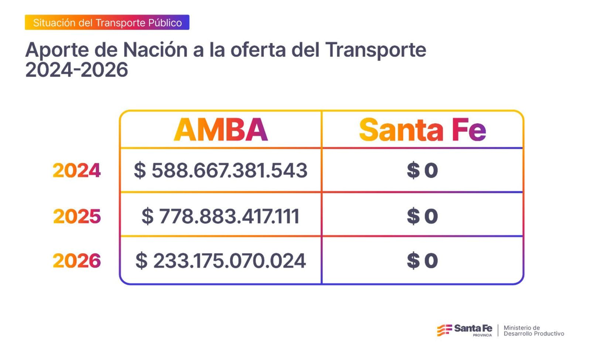 Sobre ese marco, Puccini recordó que "desde 2024 a la fecha los santafesinos aportamos $706.761 millones de pesos en impuesto al combustible, montos que deberían volver para compensar el transporte público". De manera continuada, agregó: "De esa plata, que aporta cada santafesino que carga combustible a diario, volvieron solo 133.000 millones".