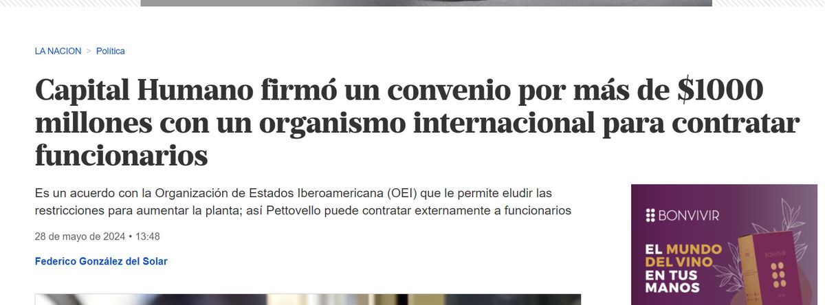 A principios de mes el diario La Nación reveló que Capital Humano terceriza la contratación de servicios profesionales a través de ese convenio para acelerar nombramientos que venían demorados. De acuerdo a las fuentes consultadas por ese medio, se trata, en muchos casos, de una práctica habitual en el Estado.