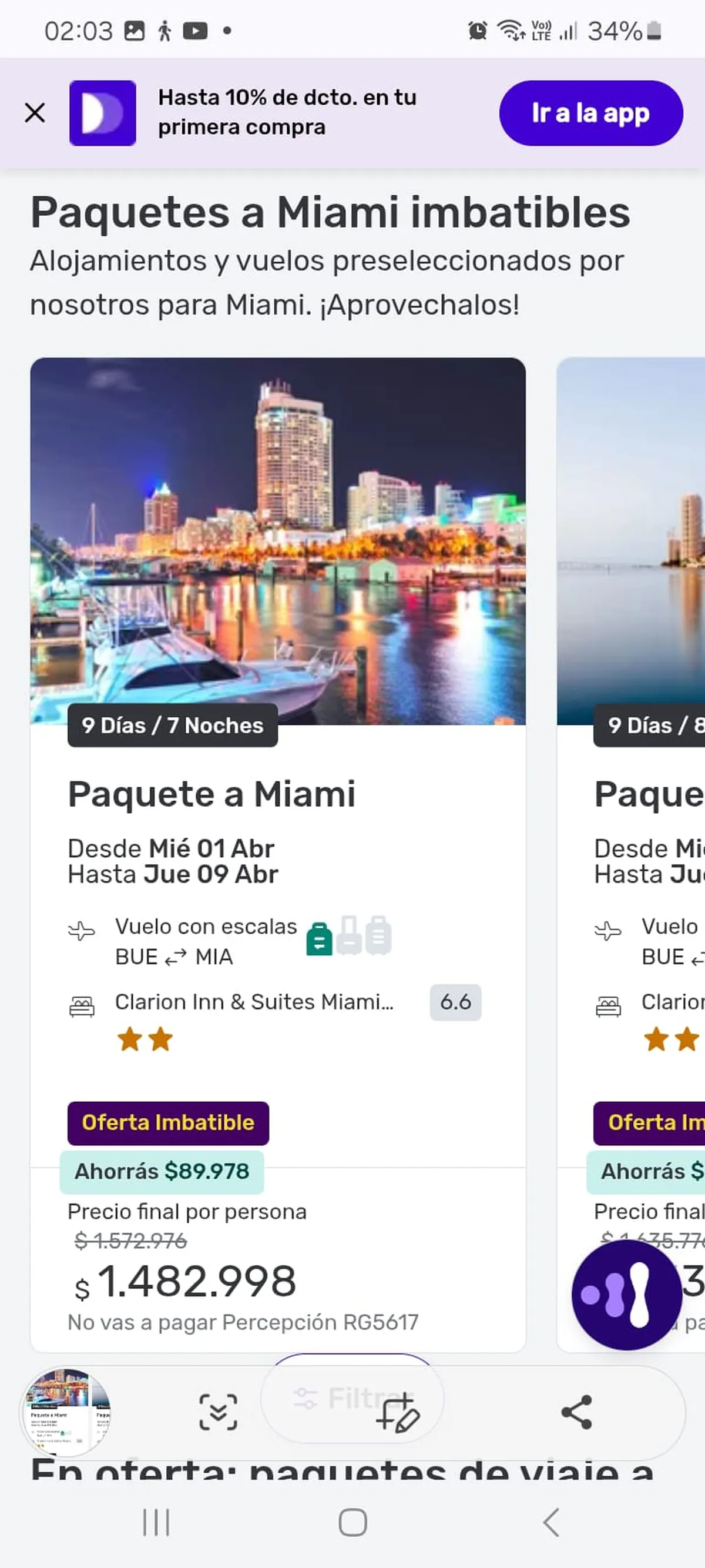 Mientras en la "feliz" exigen $ 3 millones por una carpa en enero, los paquetes a Florida, USA, para abril están por debajo del millón y medio de pesos.