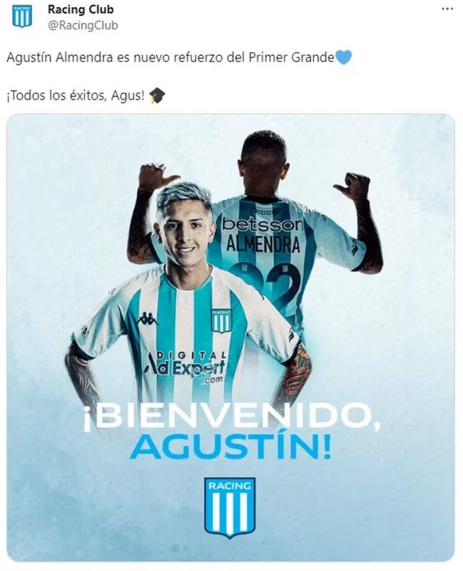 Agustín Almendra fue presentado este lunes (14/08) como nuevo refuerzo de Racing y lanzó una picante dedicatoria contra Boca: “Ahora estoy en casa”.