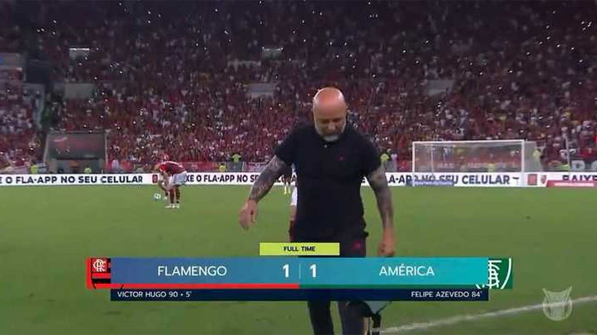 Flamengo empató este último sábado 22/07 sobre la hora ante América Mineiro 1-1 lo que hizo estallar de la bronca al técnico argentino Jorge Sampaoli.