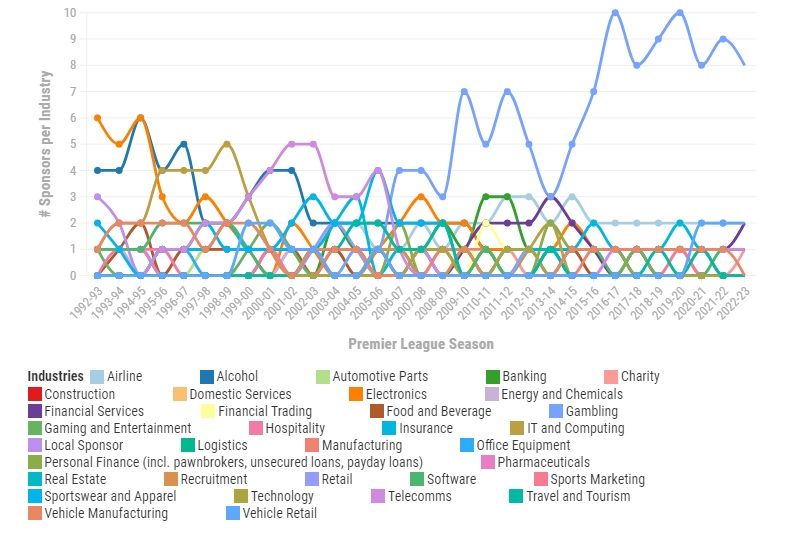 De este modo, los sponsors de sitios de juegos de azar en clubes de la Premier League aumentaron rápidamente, llegando a picos máximos en las temporadas 2016-17 y 2019-20, donde la mitad de ellos tenían acuerdos con estos patrocinadores. Así, la industria del juego se volvió prácticamente el padrino del fútbol inglés, no solo como resultado directo de los cambios en las legislaciones, sino por el flujo de intereses de otras industrias en los consumidores, las agendas extranjeras y el crecimiento del sector.