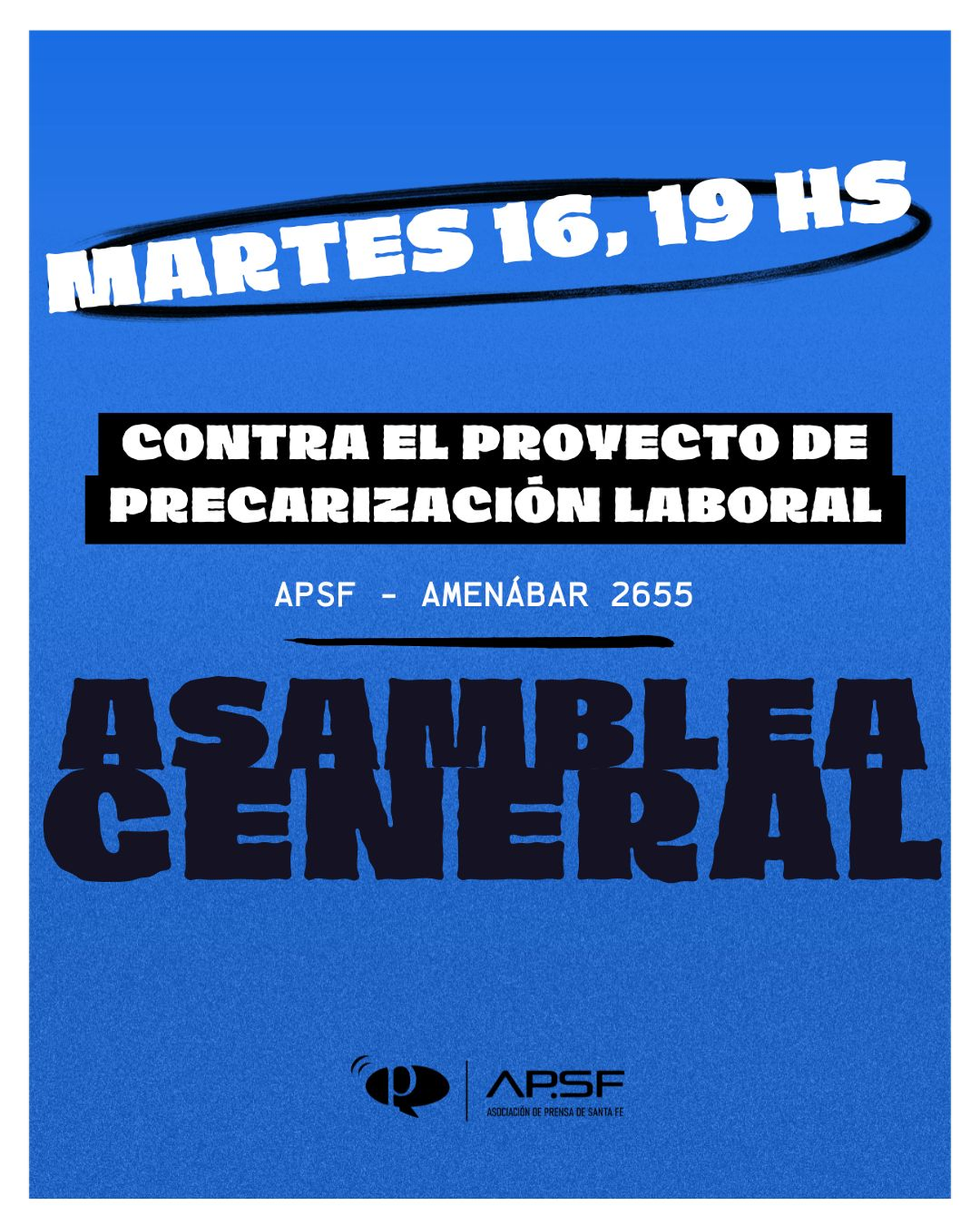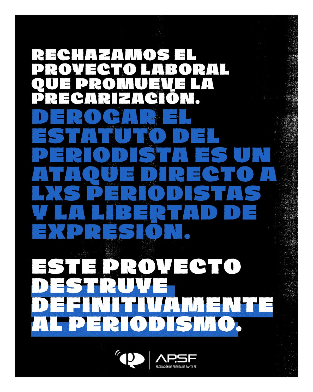 En base a ello, la Asociación de Prensa de Santa Fe se adelanta a la movilización de la CGT/CTA del próximo 18 de diciembre y realizará una asamblea general el martes "contra el proyecto de precarización laboral".