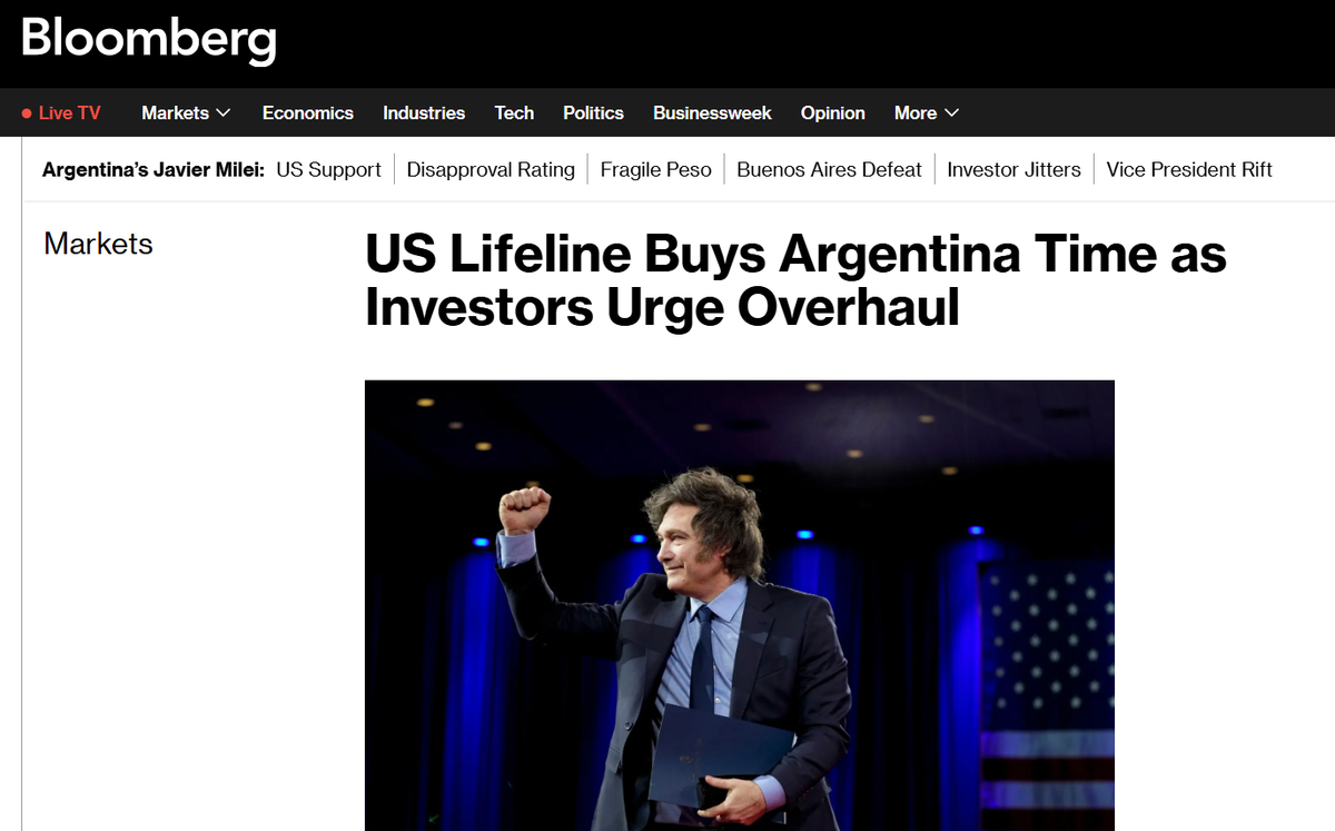 Javier Milei ya partió rumbo a Estados Unidos para reunirse mañana (14/10) con Donald Trump y ultimar los detalles del acuerdo por el 'rescate' con el que busca oxígeno para llegar a las elecciones legislativas. El Presidente apuesta todo (all in, se dice en el póker) ya que necesita, desesperadamente, dar "buenas noticias" aunque hay dudas sobre si las "buenas noticias" serán sólo para la supervivencia del Gobierno libertario o también para los argentinos. El costo de la asistencia sigue siendo desconocido por los ciudadanos/electores (y, probablemente, mucho de la letra chica no se conozca) pero se intuye elevado.