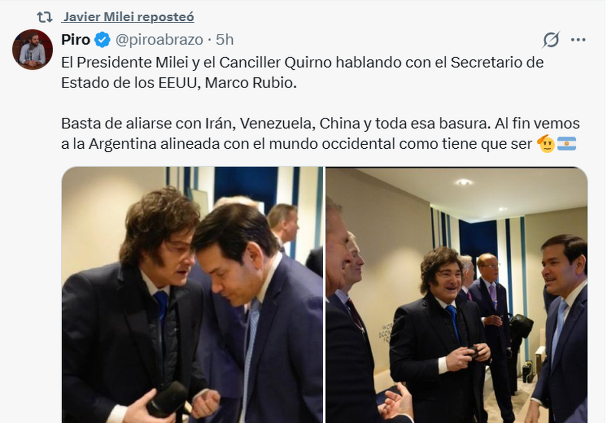Javier Milei deja Suiza este jueves (22/01), tras cerrar su participación en el Foro Económico Mundial de Davos (sin pena ni gloria...), y aterrizará mañana temprano en la Argentina, de acuerdo a lo informado oficialmente. El viaje marca el fin de una breve pero intensa agenda internacional, y ahora arranca la etapa 'cabotaje'.