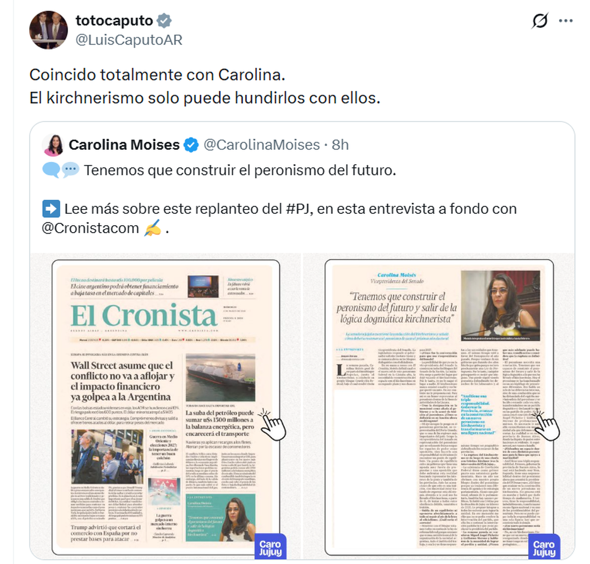 "Queremos que vuelva ese Milei, que el Presidente valore al empresario argentino, porque vamos a ser los que vamos a construir este país", aseguró.