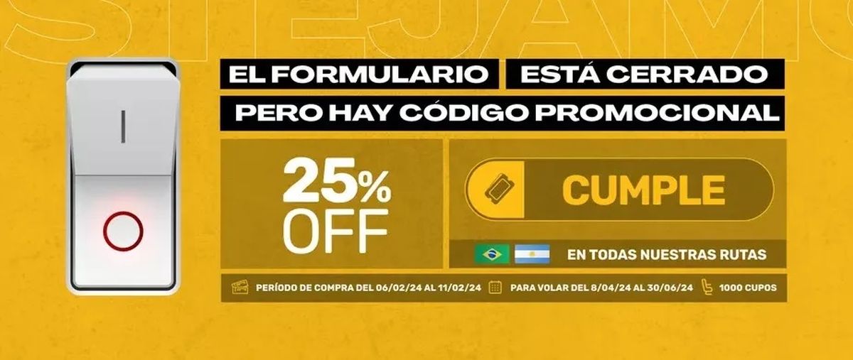 Para participar, los interesados deben registrarse en la plataforma de la low cost en la parte 'Cumple6', ingresando con su DNI y correo electrónico. La aerolínea se hace cargo de la tarifa base y los beneficiarios deberán abonar tasas e impuestos.