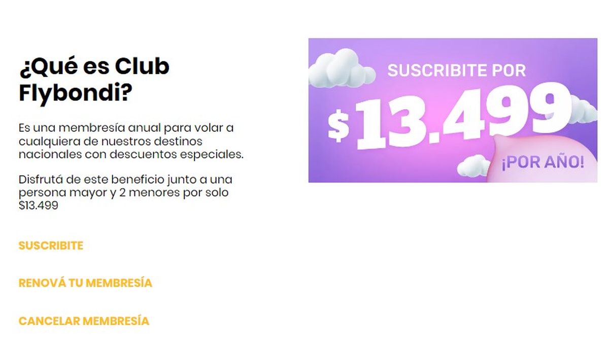 Se trata de una membresía anual para volar a cualquiera de los destinos nacionales con descuentos especiales. A su vez también, este beneficio se puede disfrutar junto a una persona mayor y 2 menores por el precio publicado.