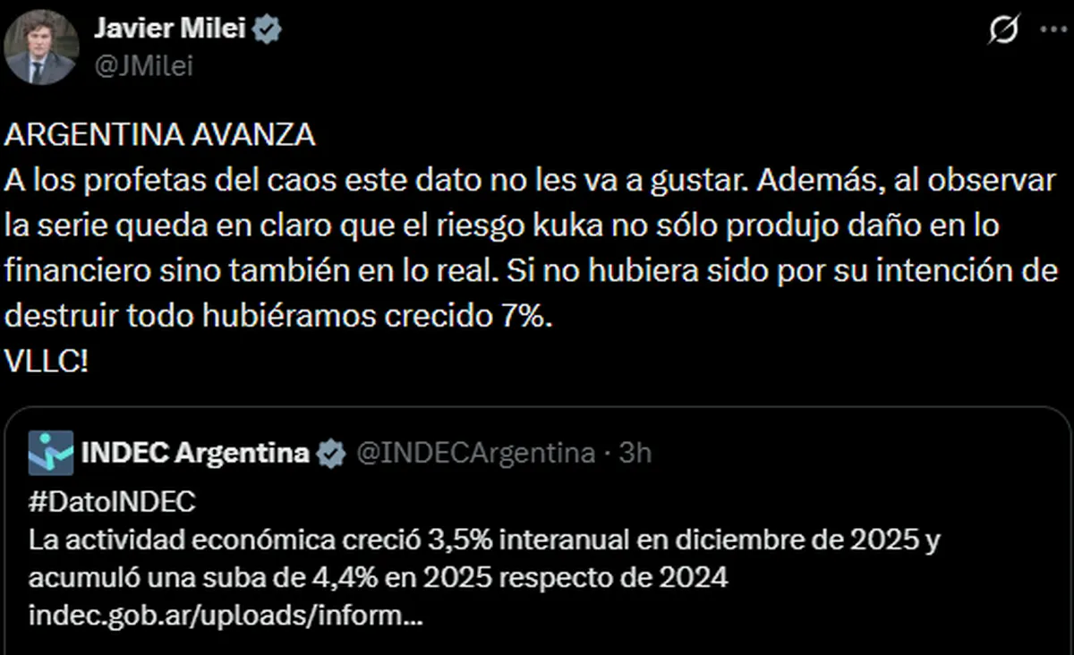 Quintela había advertido públicamente en declaraciones radiales que la actual gestión gubernamental podría "llegar a diciembre de 2027 con el país destruido".