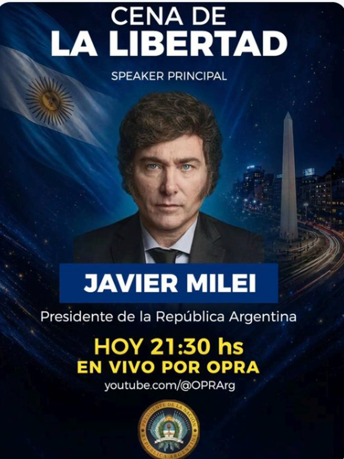 "Speaker principal", anuncia el aviso promocional libertario sobre la participación de esta noche de Javier Milei en la cena anual de la Fundación Libertad, que congregará a empresarios (el círculo rojo) y políticos. En tanto, mañana (28/04) el Presidente encabezará un debate sobre Keynes en el Palacio Libertad (ex CCK).