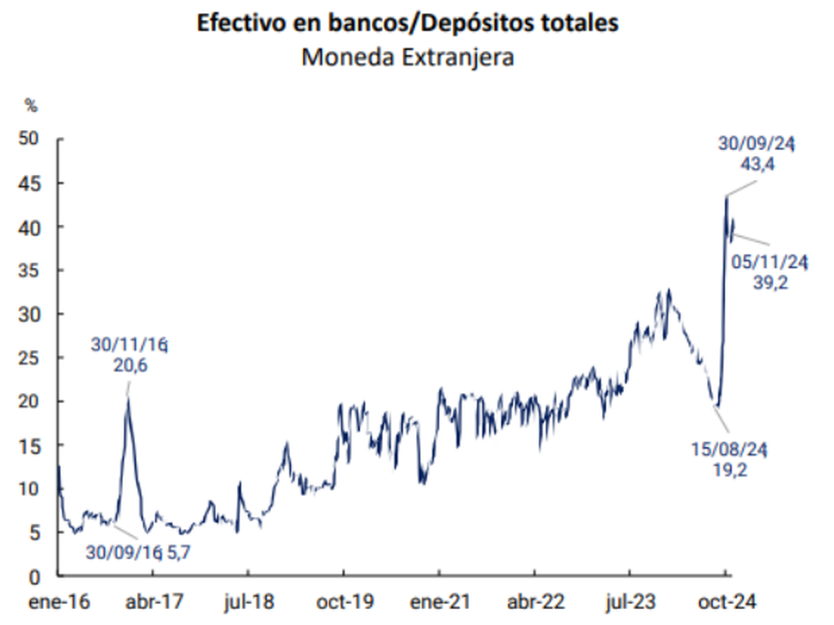 Werning señaló que este fenómeno ya se observa, con un incremento del efectivo en el Banco Central de US$4.185 millones desde finales de septiembre, indicando una tendencia favorable para la liquidez en dólares.