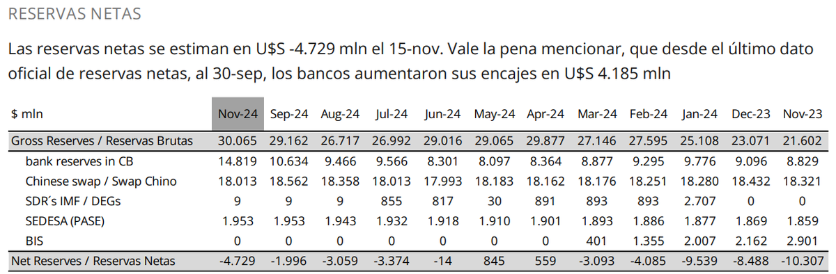 Sin embargo, las reservas netas se encuentran en un saldo negativo estimado en US$-4.729 millones al 15 de noviembre.