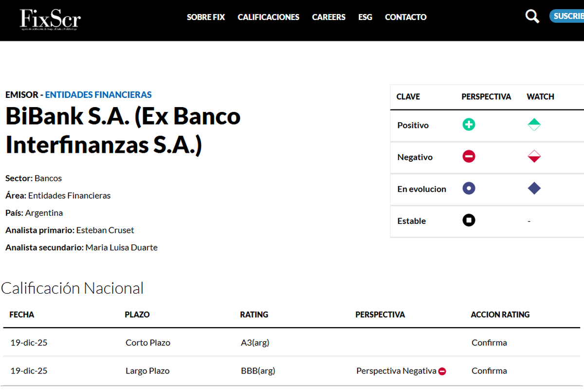 La calificadora FIX SCR, afiliada a Fitch Ratings, encendió una señal de alerta sobre BiBank al revisar la perspectiva de su calificación de largo plazo.