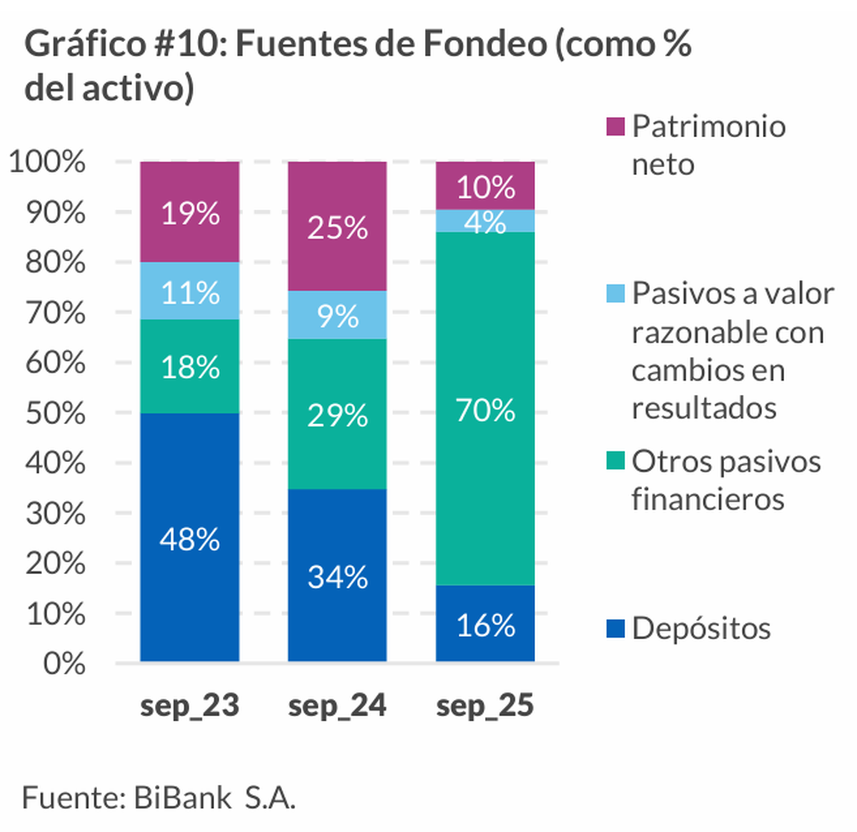 Otro foco de atención es la elevada concentración de depósitos. A septiembre, los 10 mayores depositantes explicaban el 76,4% del total, una proporción considerada alta. Dentro de ese grupo aparecen inversores institucionales, históricamente más volátiles, lo que agrega un factor de riesgo en escenarios de estrés financiero.