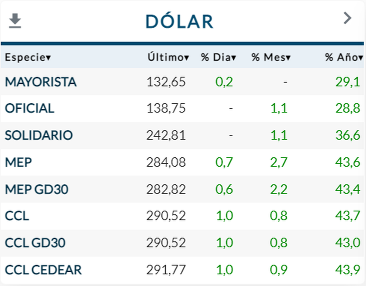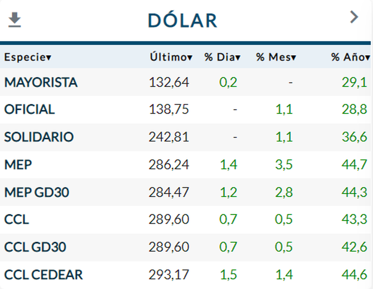 A las 14:30, el dólar blue retrocede y se ubica en los $291, en tanto, los dólares financieros se recargan y concentran nuevas subas: