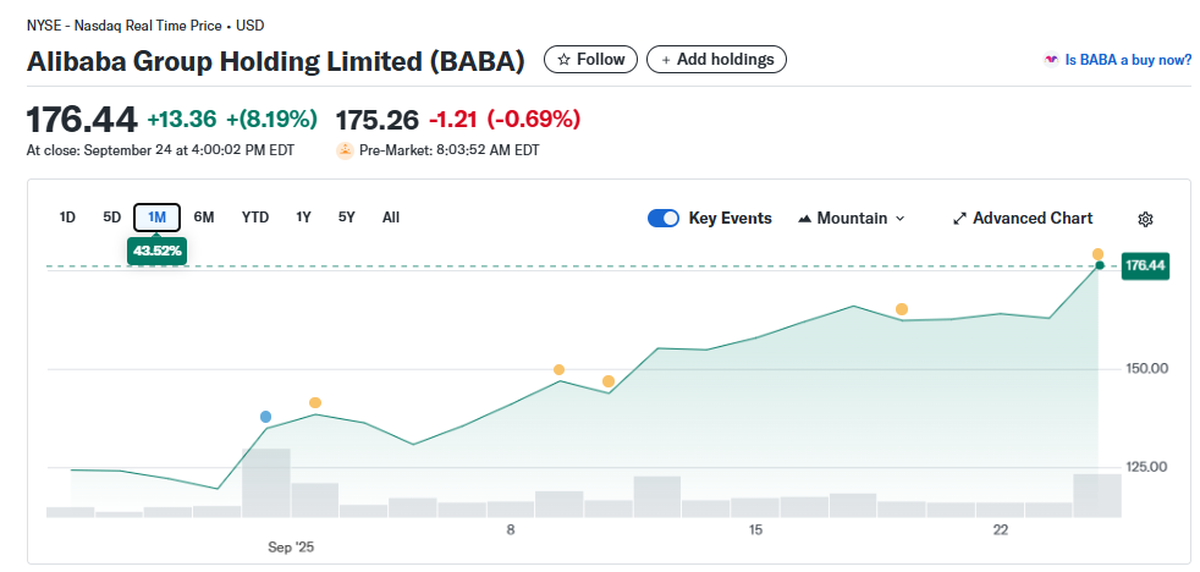 - Momentum bursátil: Alibaba duplicó su valor en el año, pero Goldman aún ve espacio de suba de hasta 40%.