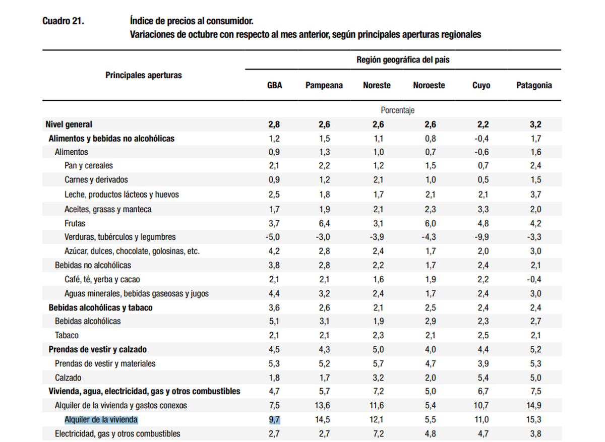 Si se toma el dato de los alquileres en la región pampeana, por ejemplo, la suba es mucho mayor: 14,5%.
