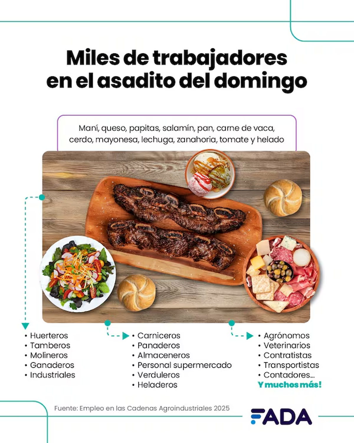 Y detrás de la ensalada del asado, hay huerteros que cultivan las verduras, recolectores, clasificadores, transportistas, empleados de verdulerías, entre otros.