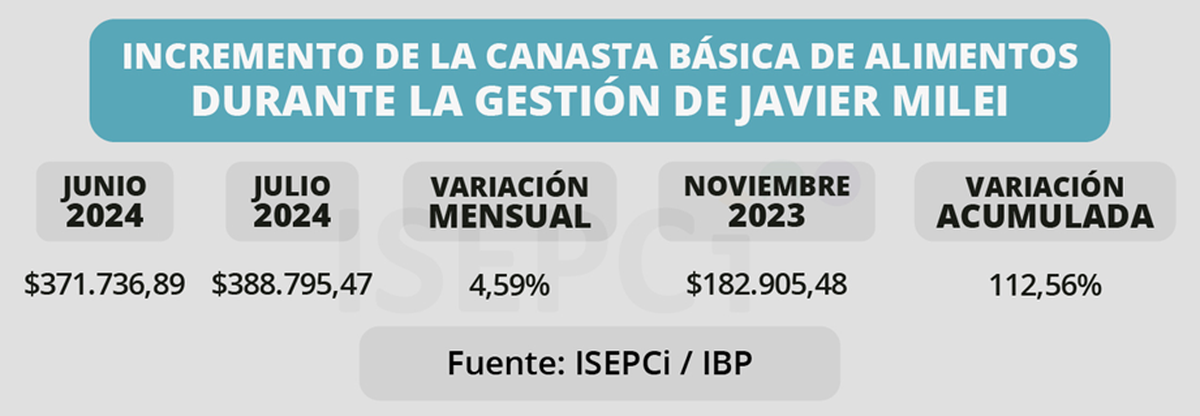 De acuerdo con esas cifras, en julio la canasta básica para una familia tipo aumentó en $17.000.
