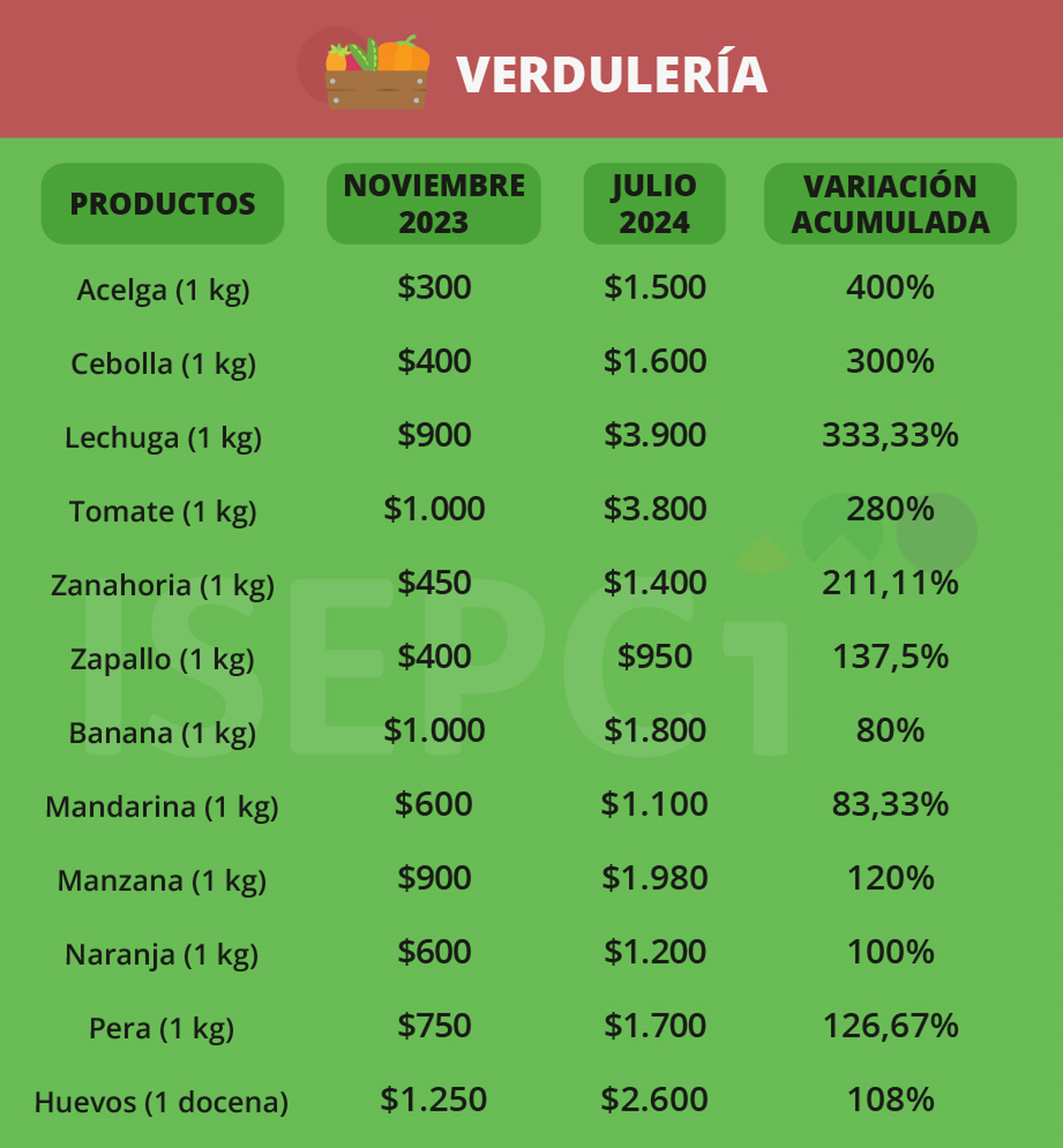 Principales aumentos en rubro verdulería: