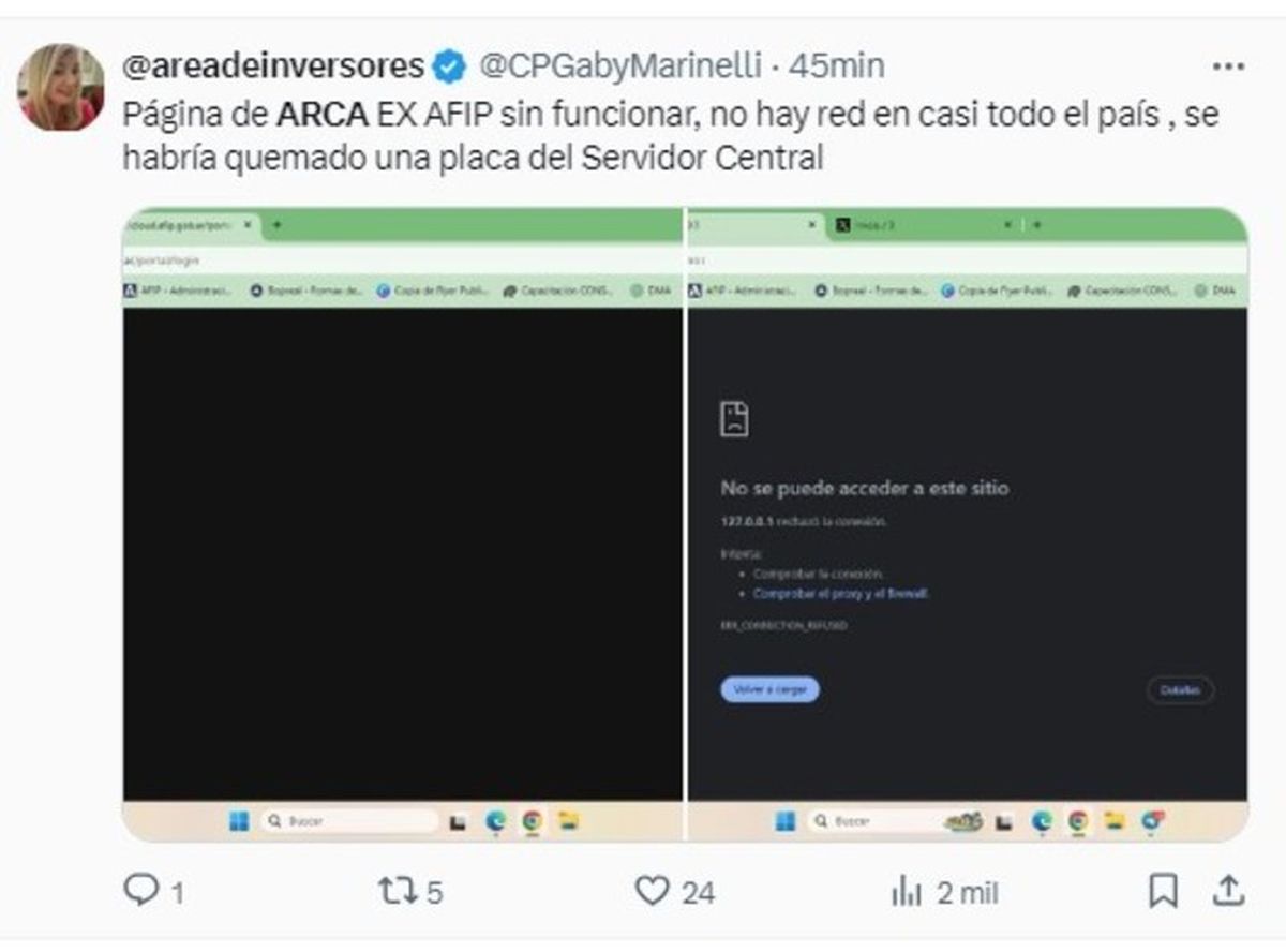 Durante las horas de caída, tanto profesionales como usuarios particulares manifestaron su malestar en redes sociales, especialmente en X. Una de las quejas más virales provino del perfil “Blog del Contador”, que publicó: “¿Alguien va a dar alguna explicación lógica en algún momento sobre el desastre que es la página?”.