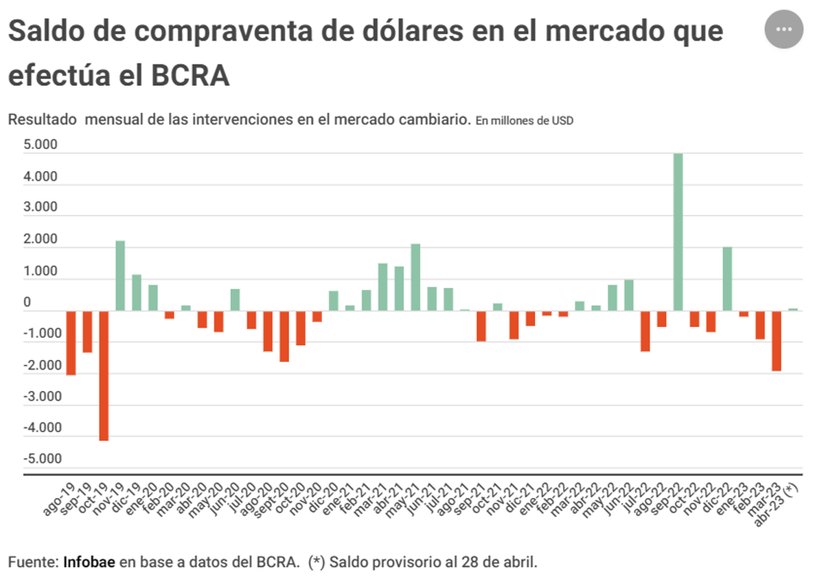 Estos datos están generando cierta preocupación en la conducción económica, ya que reconocen que si el saldo de intervenciones no comienza a mostrar resultados positivos pronto, es muy probable que los fondos invertidos para controlar los precios libres de dólares financieros como el dólar "MEP" -o bolsa- y el "CCL" resulten en vano.