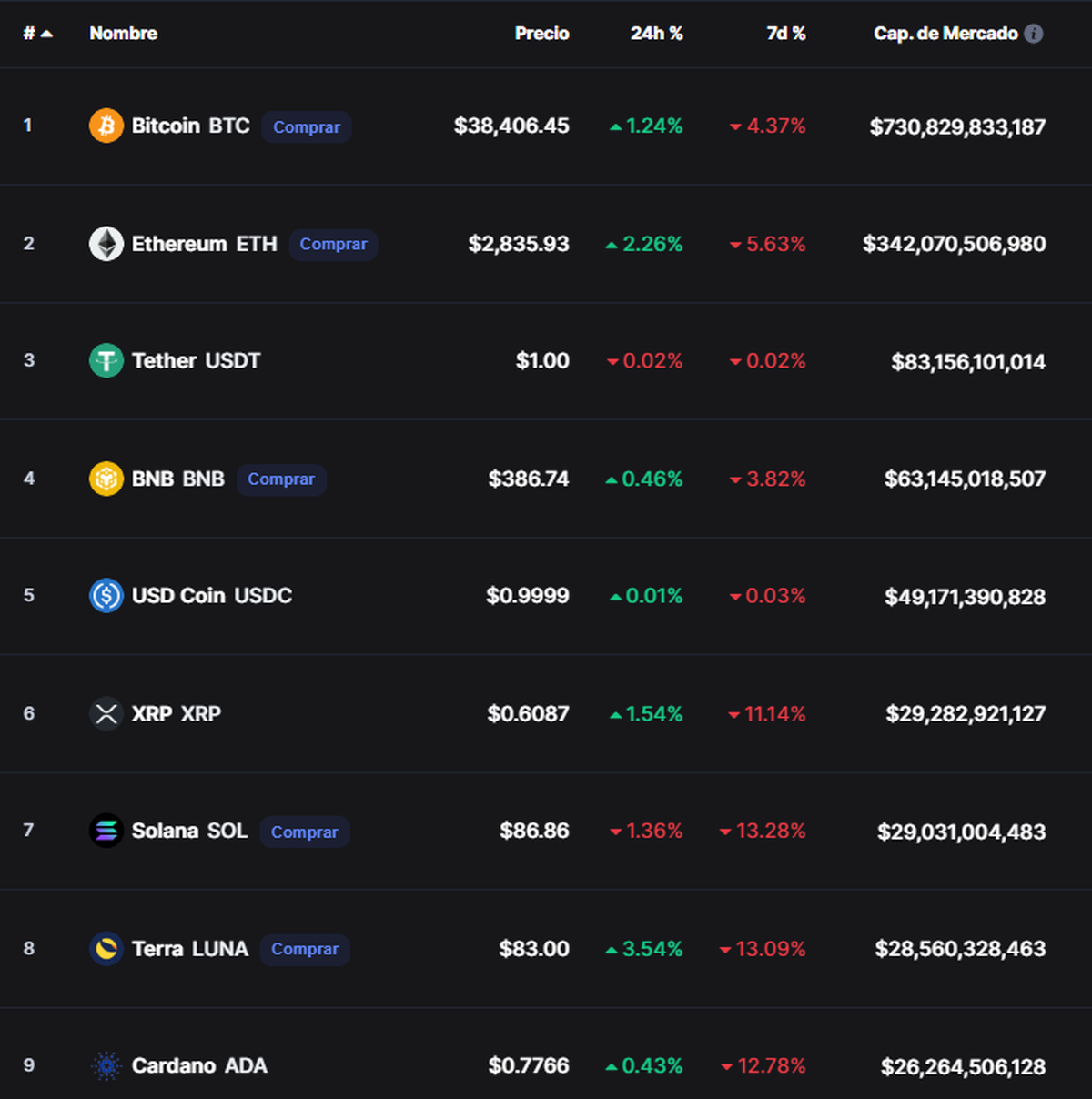 En tanto, de acuerdo con CoinMarketCap, así se evoluciona el mercado de las criptomonedas: