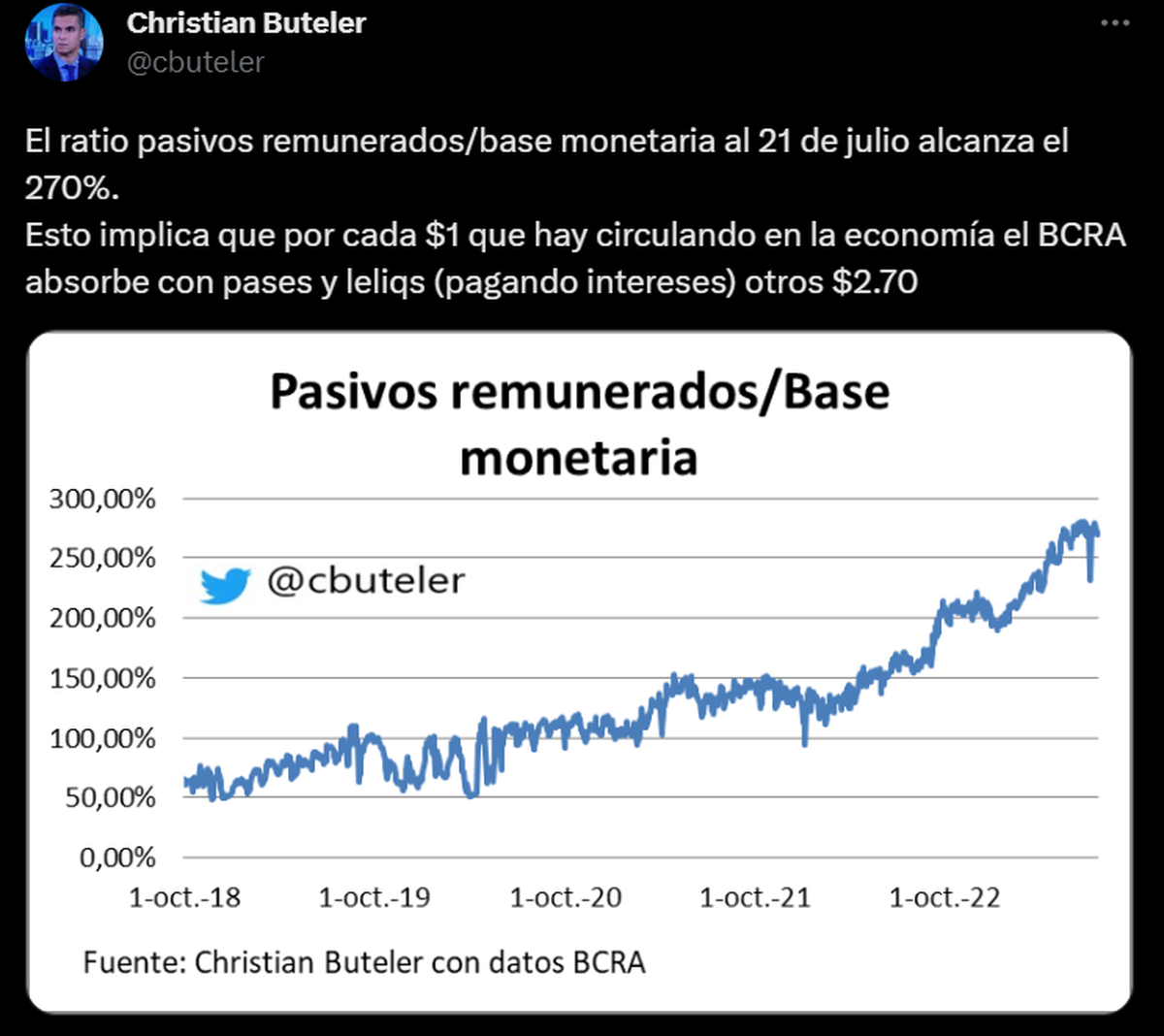 En La Libertad Avanza, los asesores económicos de Milei, accedieron a un reciente informe de Facimex Valores que reveló la agencia Bloomberg en el que señala que, a febrero, los bancos tenían títulos públicos por $17.128 miles de millones, cifra equivalente al 72% de los depósitos. Esto representa un incremento desde el 70,8% de enero y del 59,7% de febrero del año pasado.