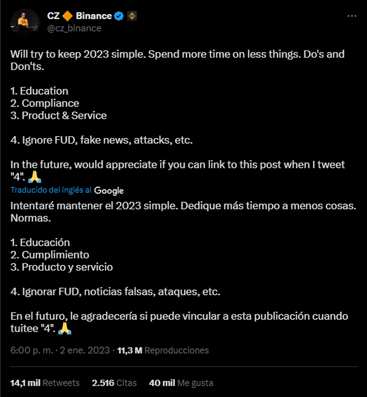 Tengamos presente que horas antes el CEO de Binance, Changpeng Zhao, se pronunció en Twitter y pidió de una forma bastante peculiar a sus seguidores mantener la calma y evitar ser víctimas del temor que se experimenta en los principales mercados: