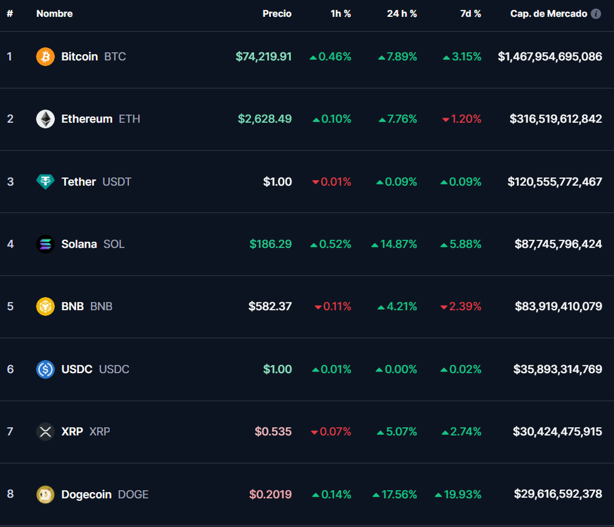 Bitcoin llega a tocar los US$ 75.000, marcando un nuevo máximo histórico, mientras se iban revelando los primeros resultados electorales de Estados Unidos.