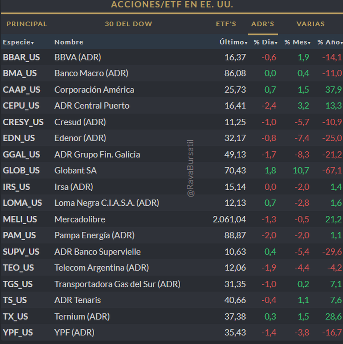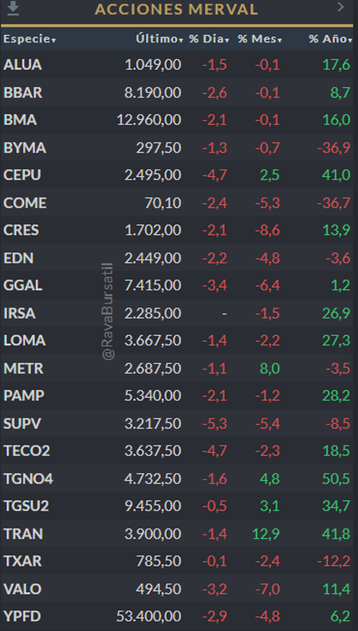 - CRES pierde -2,2%, profundizando un rojo mensual de -8,8%.