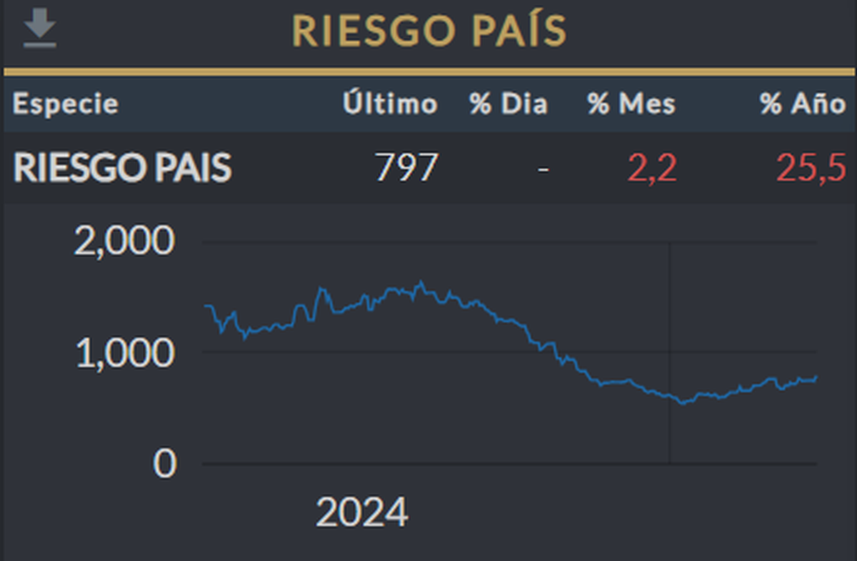 Mientras que, el riesgo país, sigue sin romper el techo de los 800 puntos básicos.