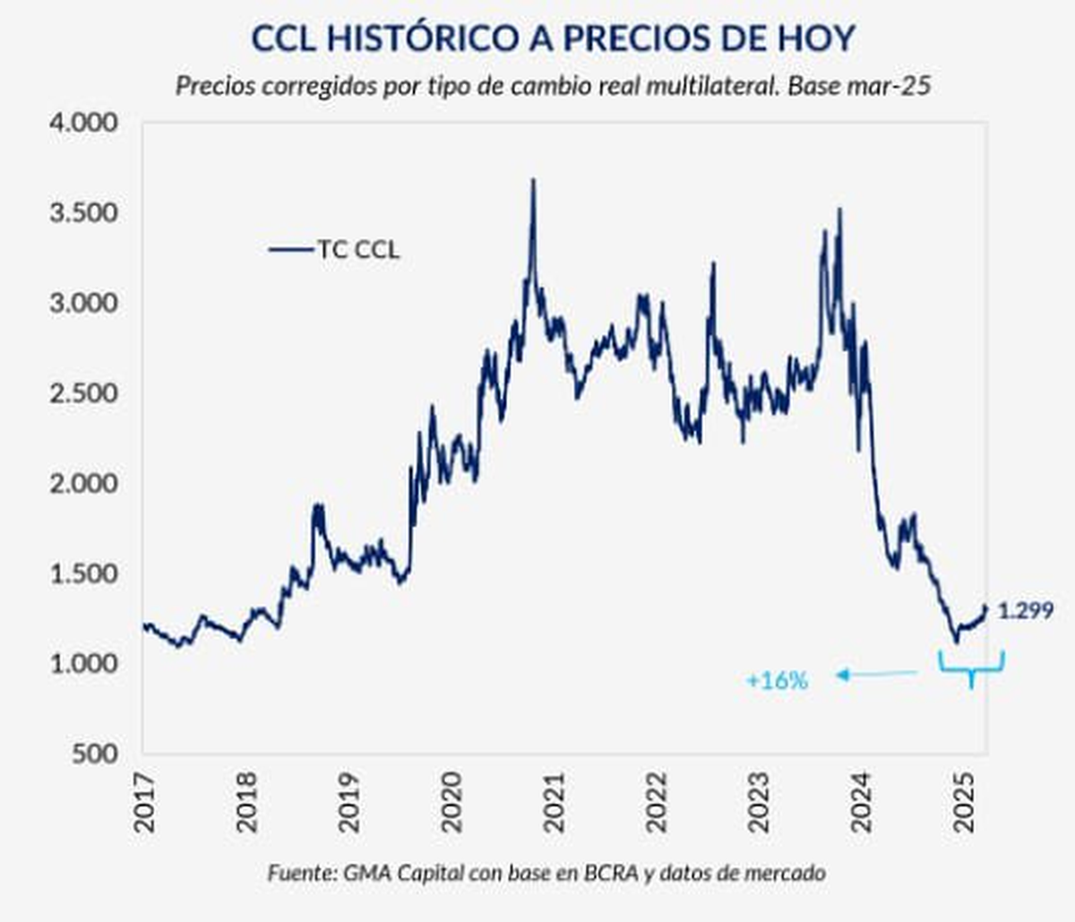 Lo curioso detrás de esta "corrida", si es que se le puede decir así, dado que como señala desde GMA Capital, el CCL histórico resulta así: