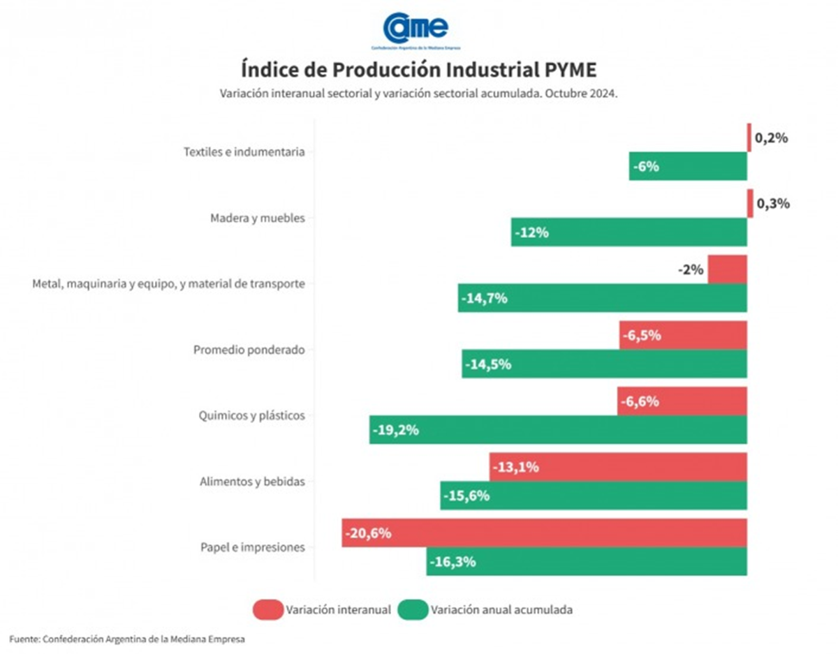 CAME: la actividad manufacturera Pyme cayó 6,5% interanual en el mes de octubre de 2024