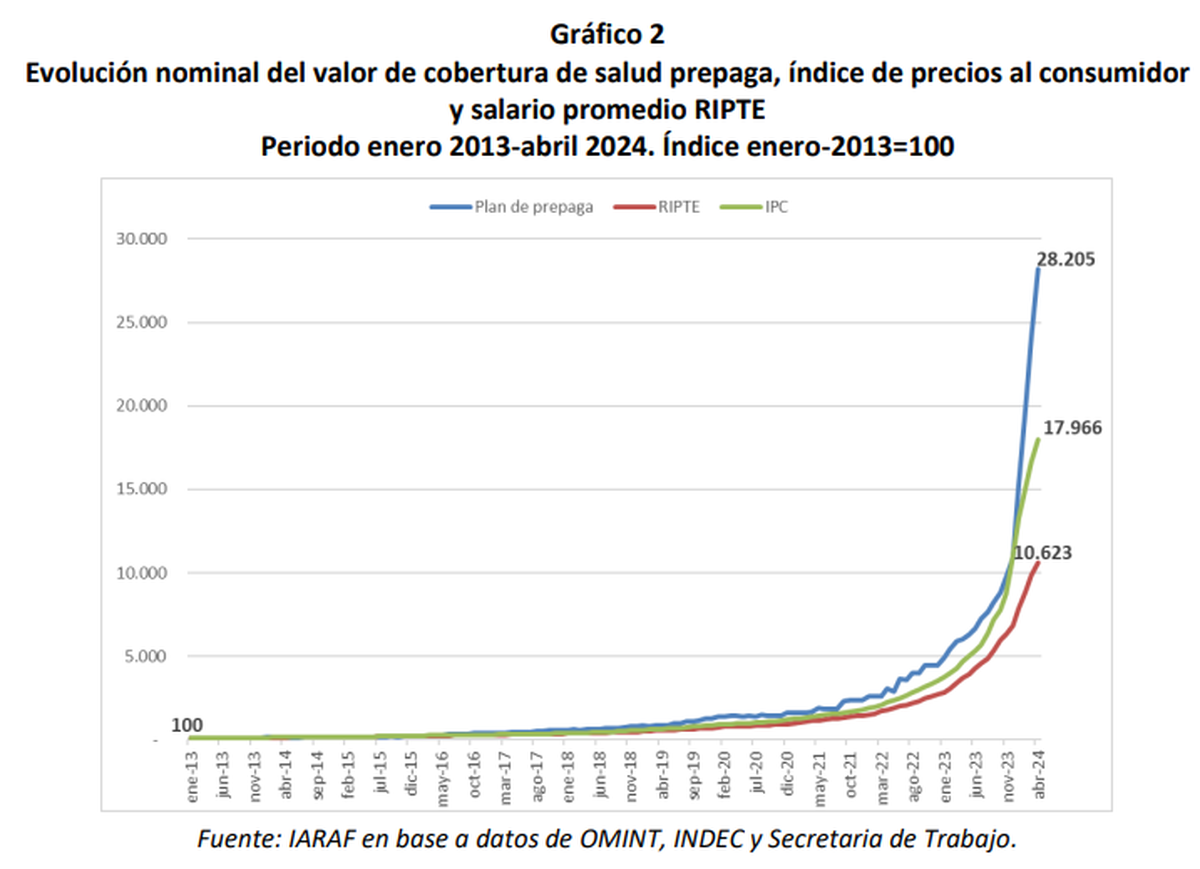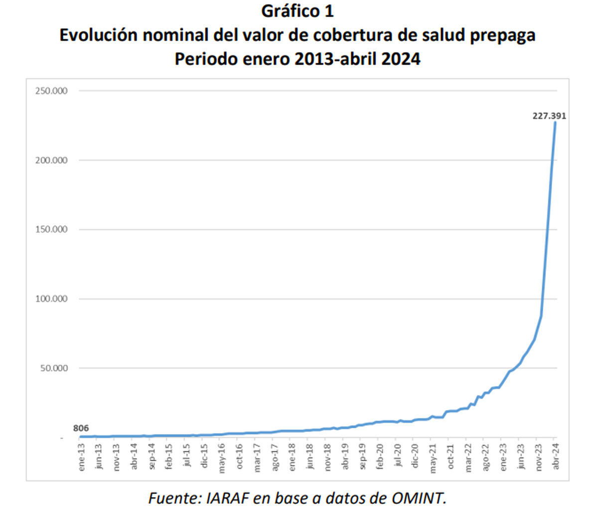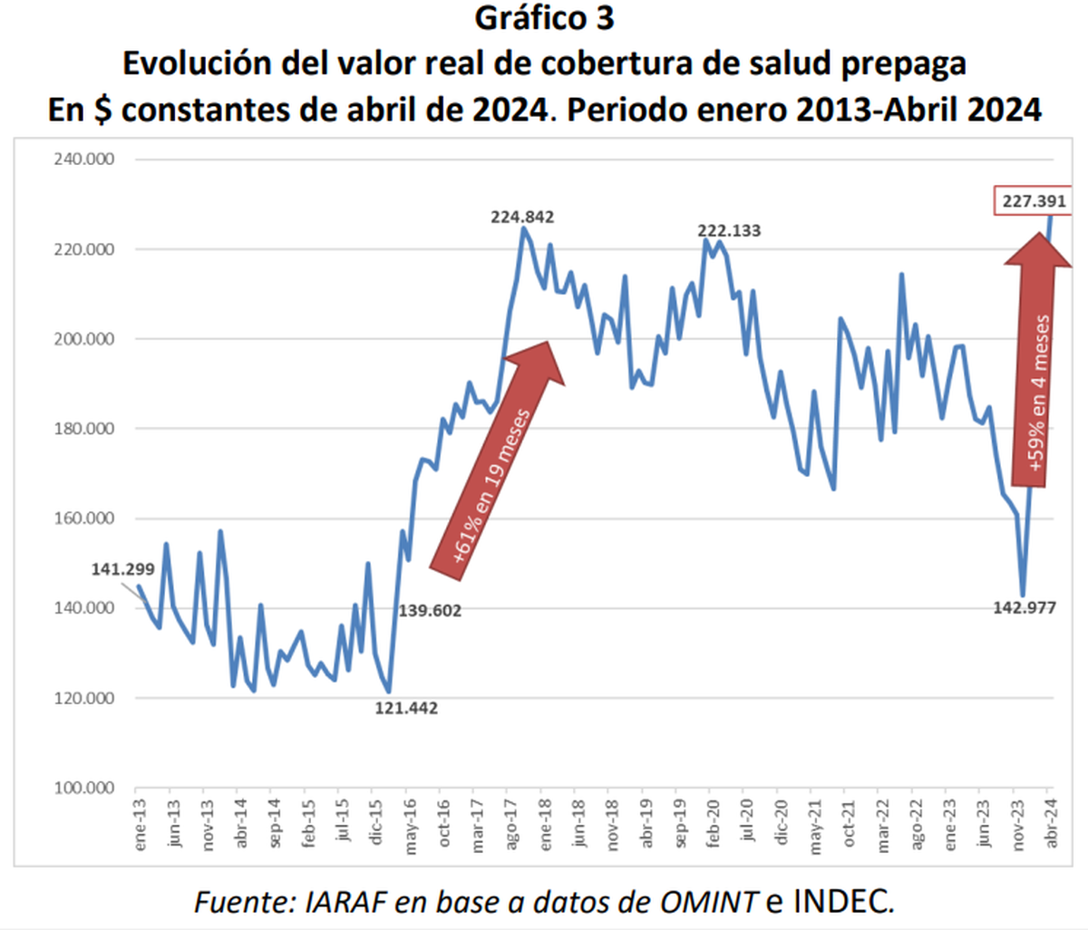 Al respecto, el Instituto Argentino de Análisis Fiscal (IARAF) llevó a cabo un seguimiento sobre la evolución de los abusivos precios de las medicinas prepagas.