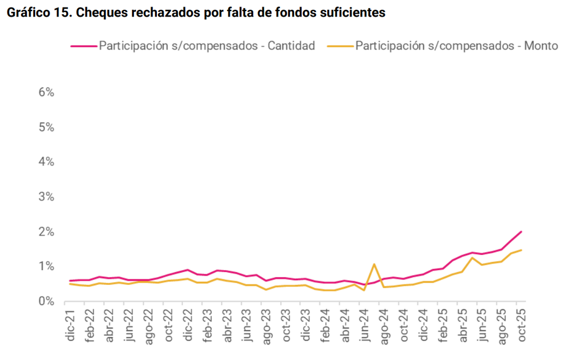Los especialistas del sistema de pagos suelen observar el rechazo de cheques como uno de los termómetros más sensibles de la economía real. Cuando la tasa se dispara: