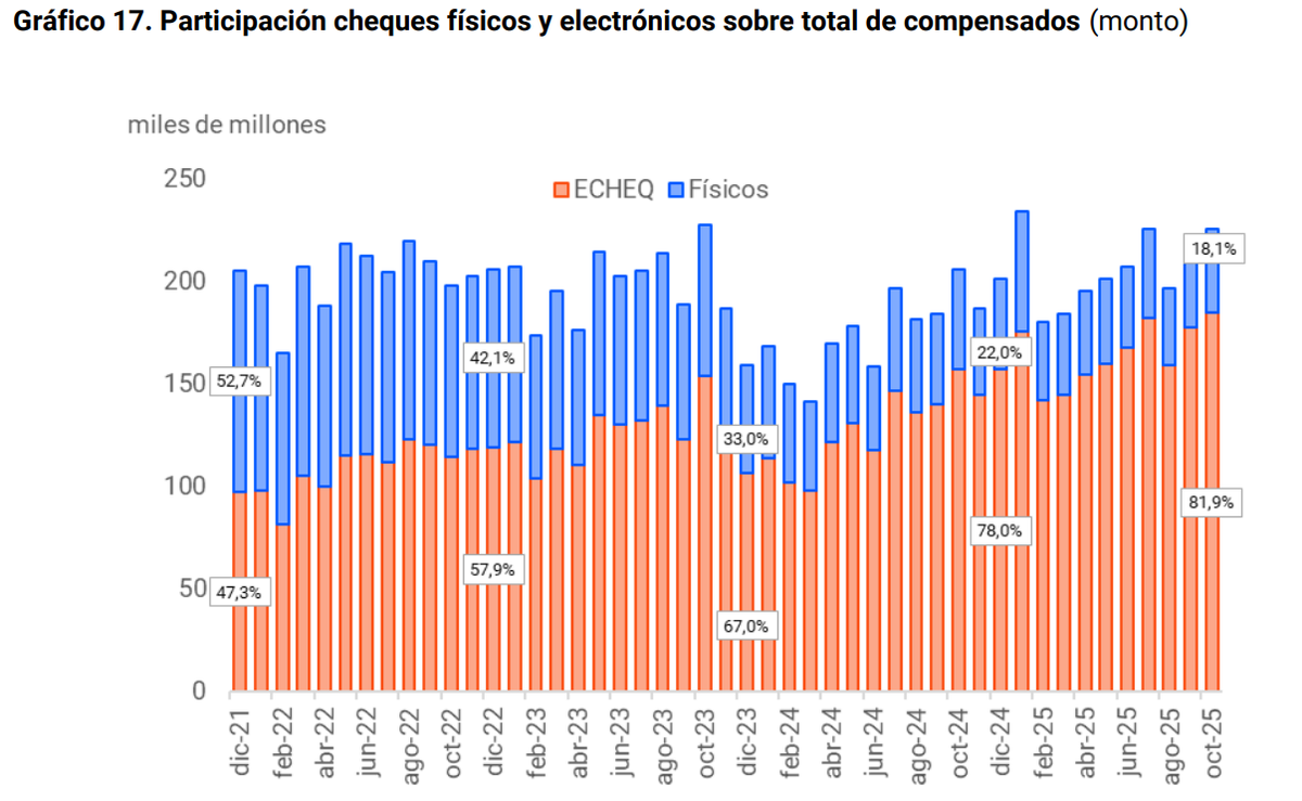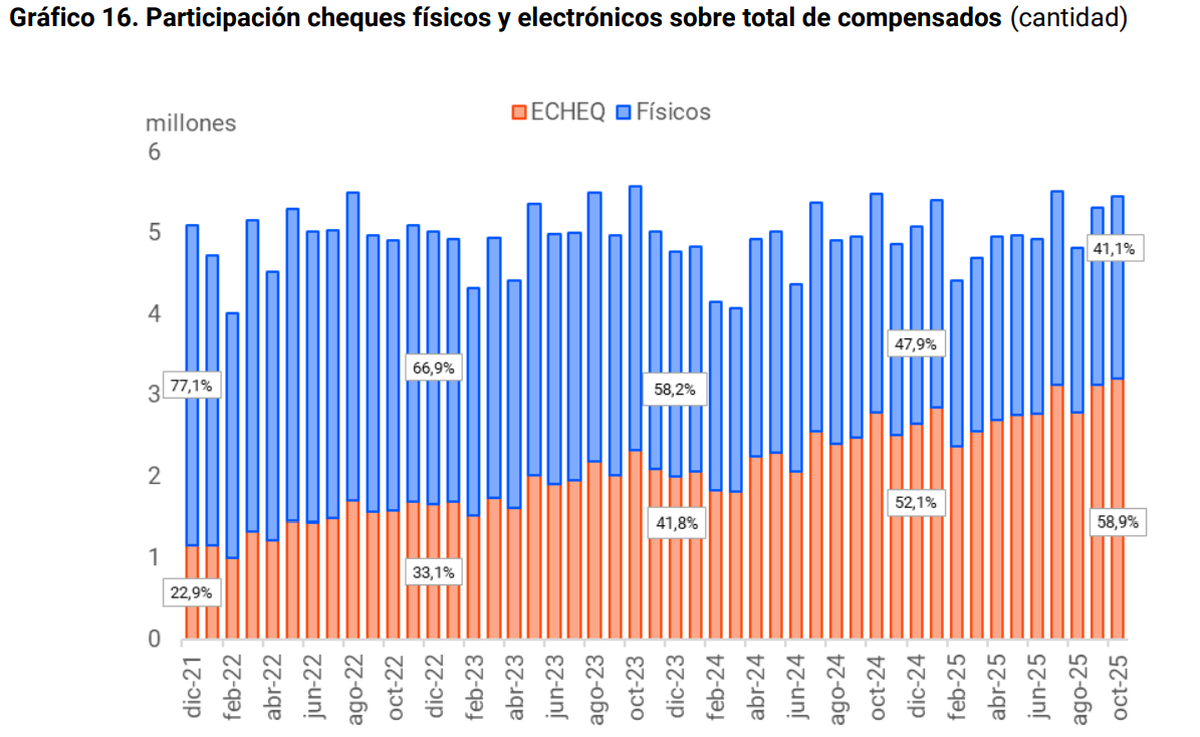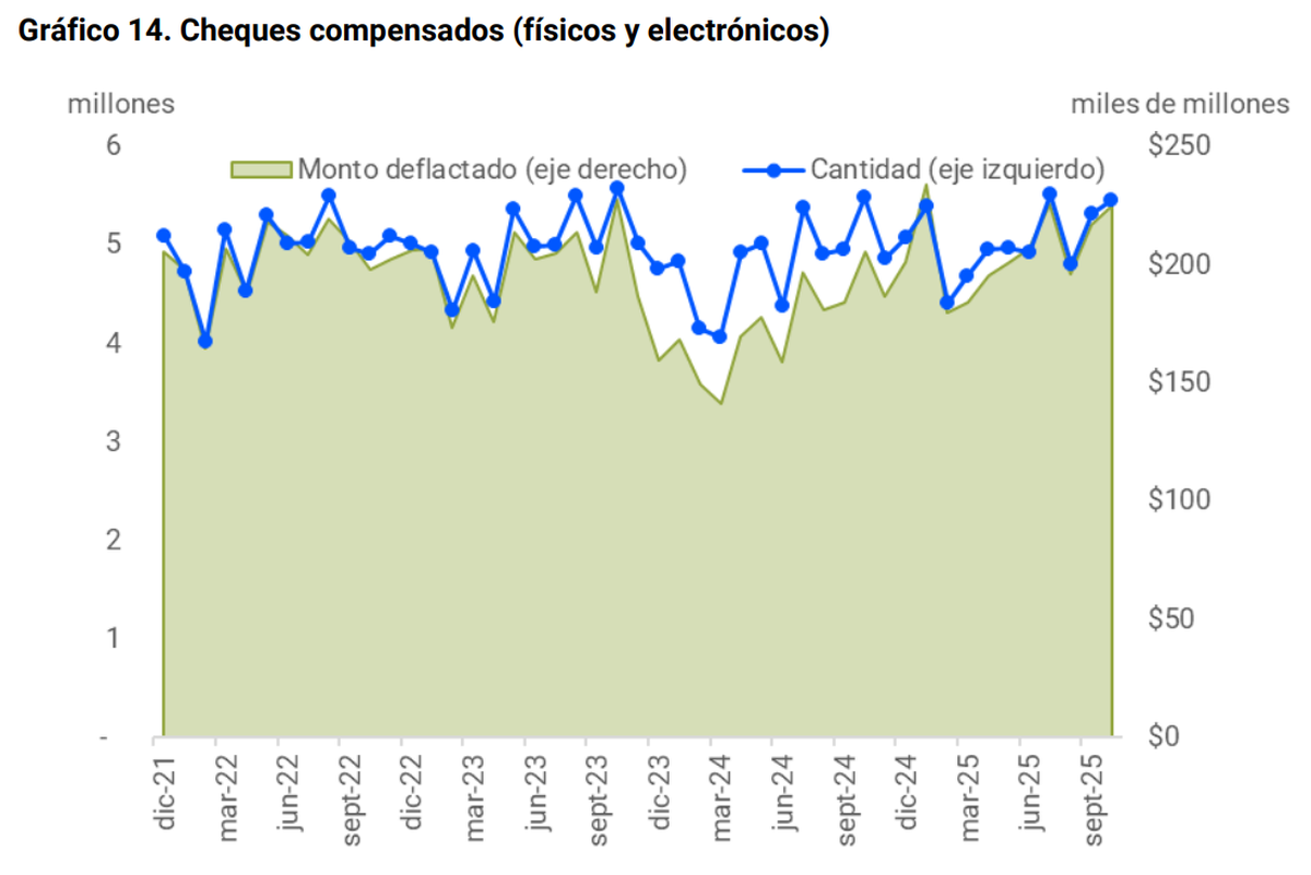 El dato rompe la estacionalidad habitual del instrumento, sobre todo porque el total de cheques compensados se mantuvo estable, con 5,5 millones procesados entre físicos y electrónicos.