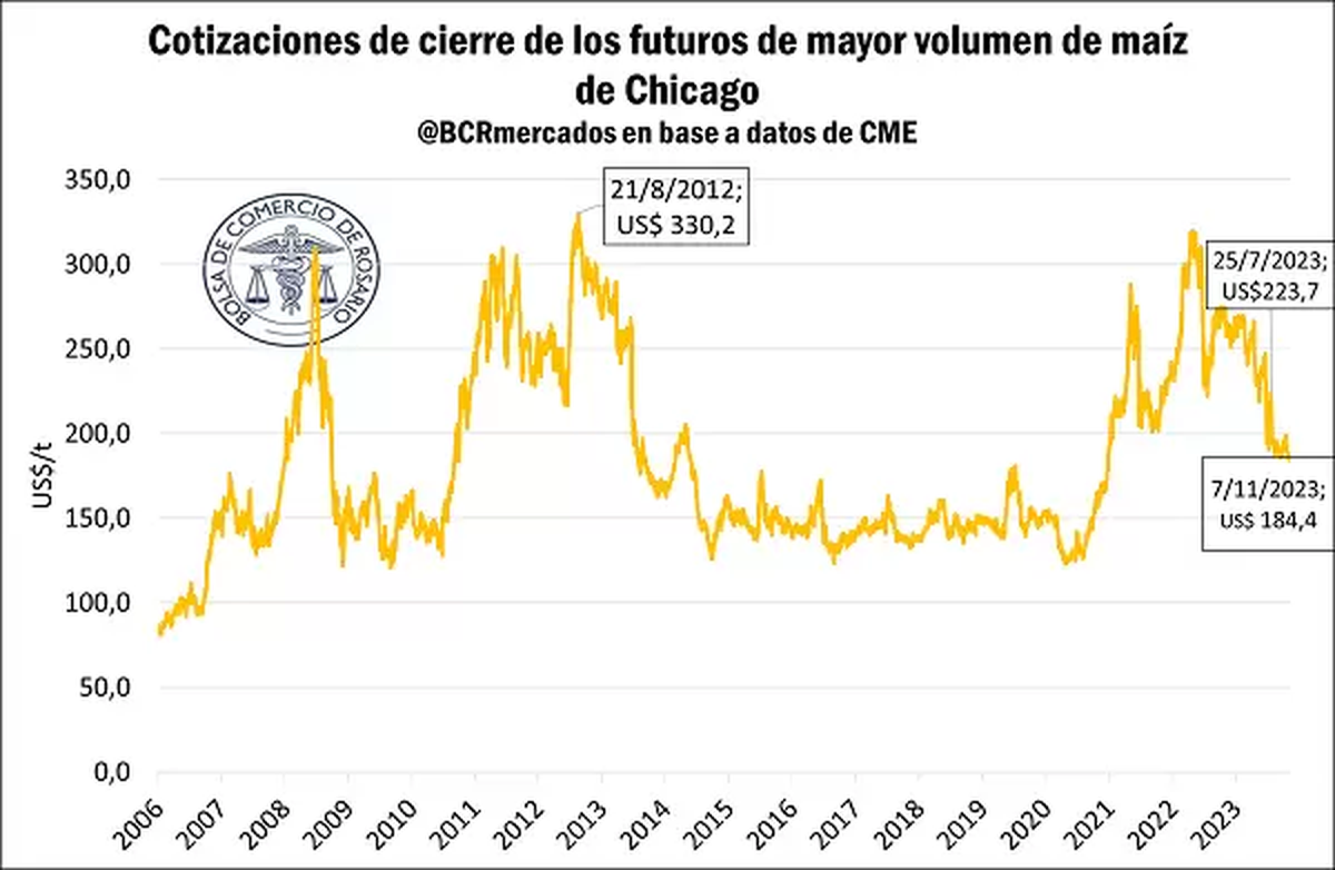 La dinámica de las cotizaciones del maíz estuvo marcada en los últimos meses por la incertidumbre generada en torno a la región del Mar Negro. A finales de julio, la ruptura del acuerdo del corredor seguro de granos motivó un aumento generalizado de los commodities, pero, pasado el vendaval, las cotizaciones sufren una abrupta caída en Chicago que acumulan en tres meses y medio una pérdida del 20%.