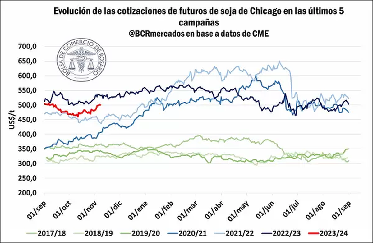 A mediados de 2023, se proyectaba un récord de producción de soja en suelo brasileño para la campaña 2023/24. Las estimaciones se mantienen en números holgados, y dependiendo de la fuente consultada, se pronostican entre 160 y 162 Mt de soja. Sin embargo, los avatares climáticos presentes durante septiembre y gran parte de octubre han introducido un grado de incertidumbre.