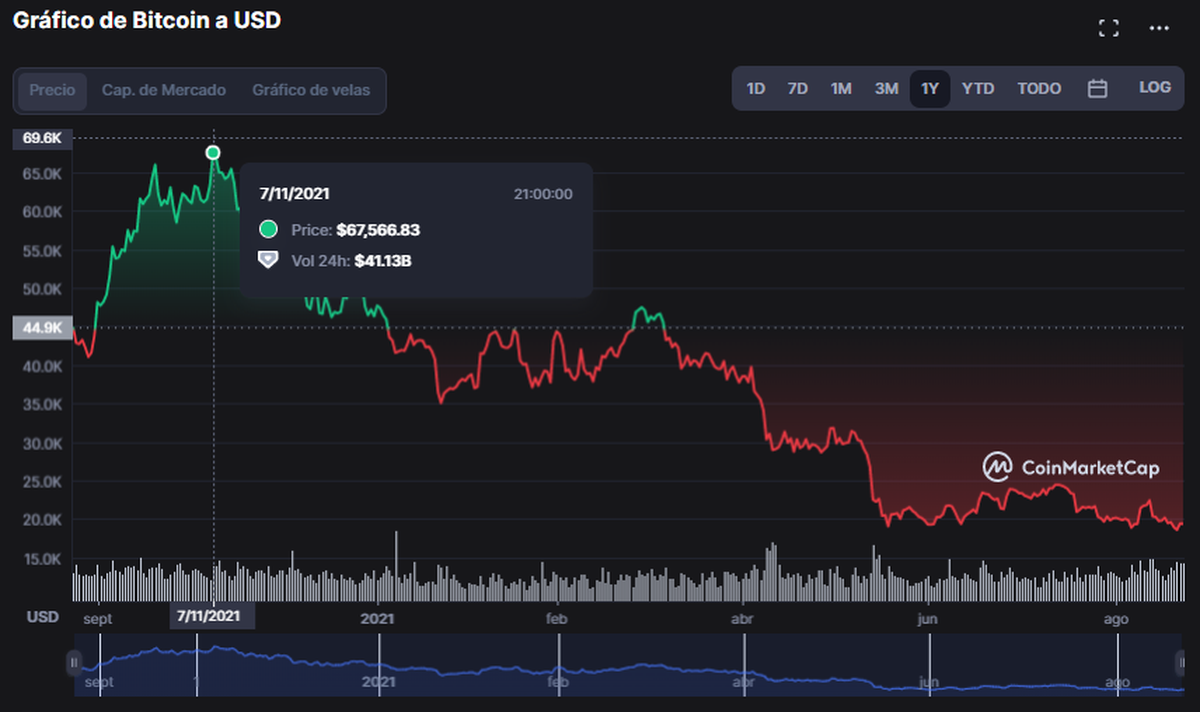 Algo similar ocurrió en el último tiempo, luego de haber alcanzado la marca de los US$ 68.000 a fines de 2021, la criptomoneda rey se desplomó y cotiza ahora, 22 de septiembre de 2022, por debajo de los US$ 20.000.