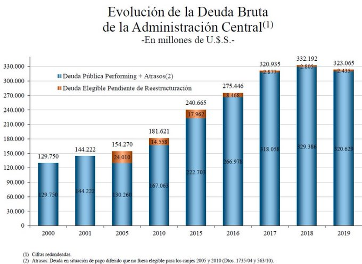 Si tomamos en cuenta la evaluación de la variación de la deuda total de la Administración Central (según los registros de la Secretaría de Finanzas del Ministerio de Economía), durante los 2 períodos presidenciales de Fernández de Kirchner, entre 2007 y 2015, la deuda aumentó en un total de US$ 81.943 millones.