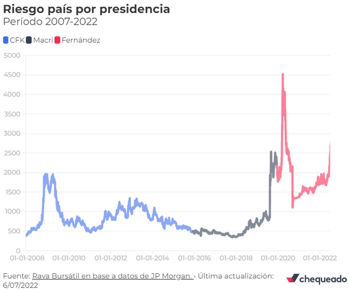 Cabe recordar que el Riesgo País refleja la diferencia en los intereses que un país paga por su deuda (conocida como "spread" o sobretasa) en comparación con los intereses que paga la Reserva Federal (Fed) de Estados Unidos por sus bonos. Estos bonos estadounidenses se consideran un punto de referencia por representar un menor nivel, por no decir nulo, de riesgo.