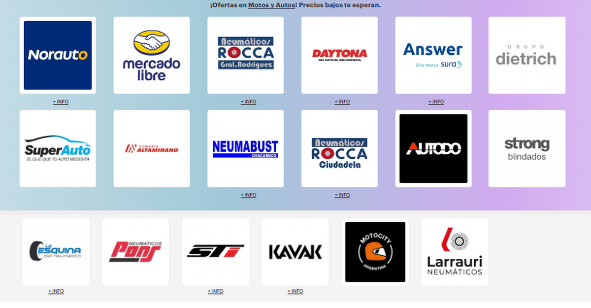 En Motos y Autos: casas como Norauto, Kavak, Neumáticos Rocca, La Esquina y más.
