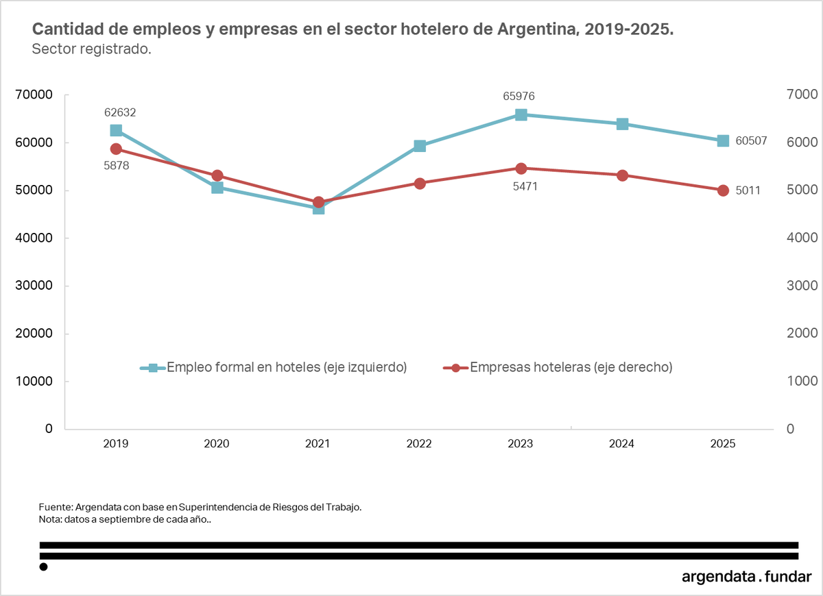@danyscht: El gobierno decidió cortar financiamiento al INdEC para relevar estadísticas de turismo, porque no le gustan los datos, que dan mal. Pero que el turismo viene mal en la Era Milei se refleja en indicadores de otras fuentes también, como las de la Superintendencia de Riesgos del Trabajo. Allí se ve que en los últimos 2 años cerraron 460 empresas hoteleras y se destruyeron 5.469 empleos formales en el sector. Más que cortar las estadísticas de turismo, sería mejor pensar cómo promocionar a un sector que tiene un potencial gigante en Argentina, que genera mucho empleo joven y que es recontra federal.
