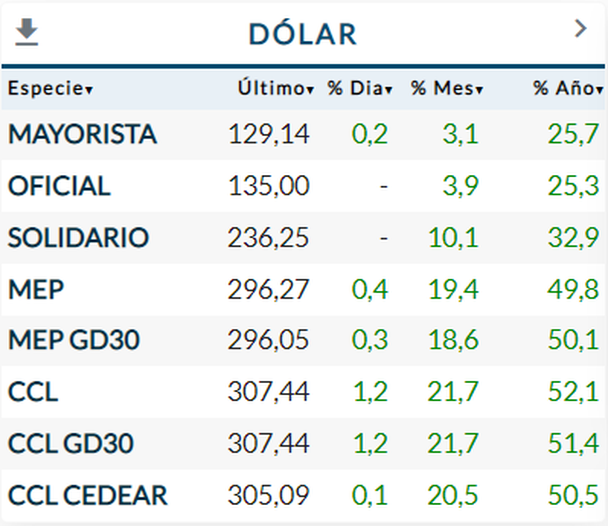 En cuanto a los dólares financieros, de acuerdo con Rava Bursátil, así cotizaban este martes 19 de julio a las 15:43 horas: