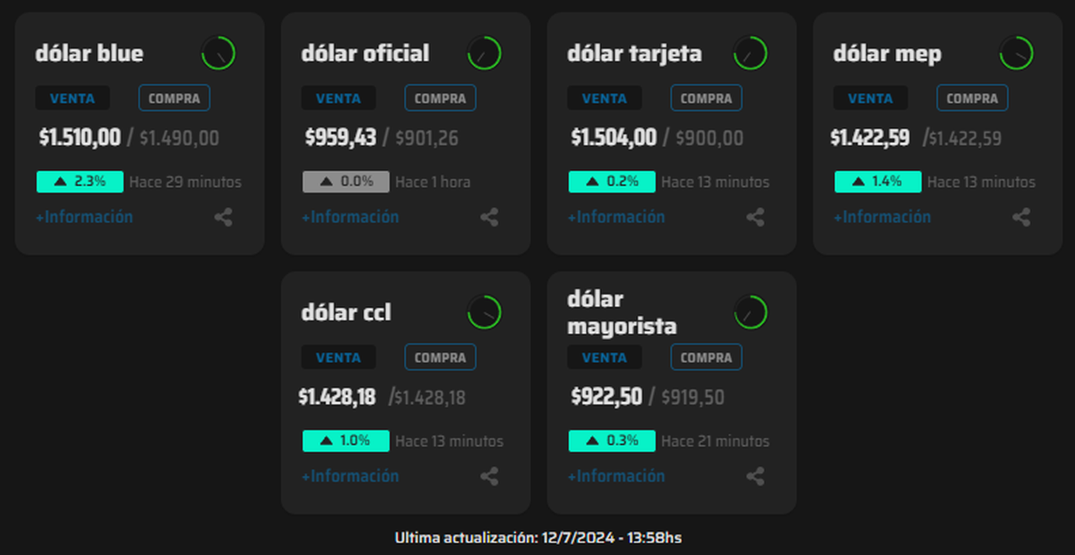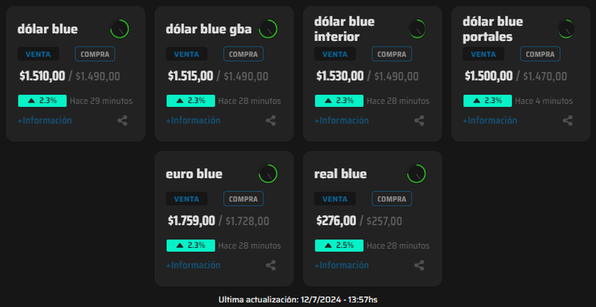 El dólar blue sigue rompiendo récords, hoy (12/7) avanza $35 y rompe así la barrera de precio simbólica de $1.500.